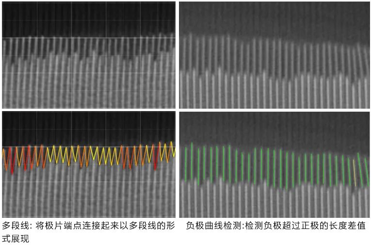 在新能源汽车电池的设计和制造过程中,负极极片在长度和宽度方向上会有多出正极极片之外的部分,这样的设计有助于避免锂枝晶的形成,从而防止电池内短路和热失控,确保电池的安全性和稳定性,因此极片对齐度是一个重要的参数,属于电池必须检测的项目。