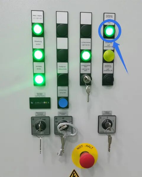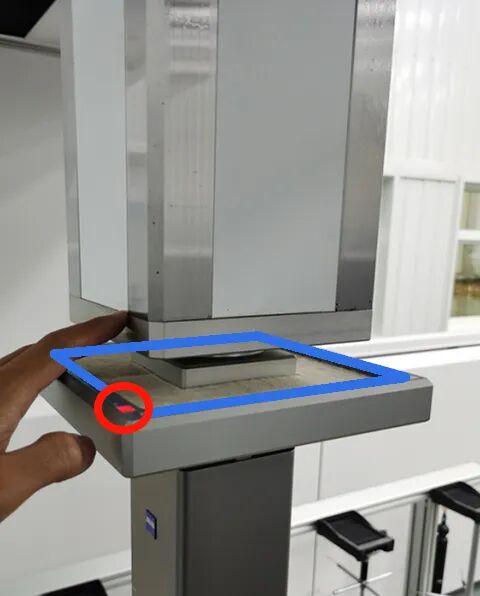 图片中的箭头标记绿灯无法点亮,导致驱动无法正常加载。 解决方法 01 Z轴a级保护有遮挡或者灰尘较多可能导致下图红色标记位置亮红灯,可尝试清洁下图蓝色标记位置,及上面与之对应的相同区域。 02 卸下探针,用手握住探头缓慢前后左右倾斜一定角度,再缓慢放回到中间位置,重复几次,然后用手做一次步骤一图中的遮挡动作,触发a级保护,然后尝试在控制柜激活保护。 03 当探头或探针与工件发生碰撞导致VAST出现上图倾斜或者1#测针顶在工件上,无法激活碰撞保护也无法移开工件时,可尝试将碰撞保护的钥匙打到模式2,即临时将碰撞保护屏蔽,此时可加载驱动,然后将机器移动到安全位置(条件允许的情况下,建议先卸载探针再屏蔽碰撞保护)。 04 将机器从碰撞位置移开后须立即激活保护。 如果按照以上步骤还是无法解决,您也可以扫描设备二维码,或者根据以下引导,进入【在线报修】模块提交工单,我们会及时跟进服务。